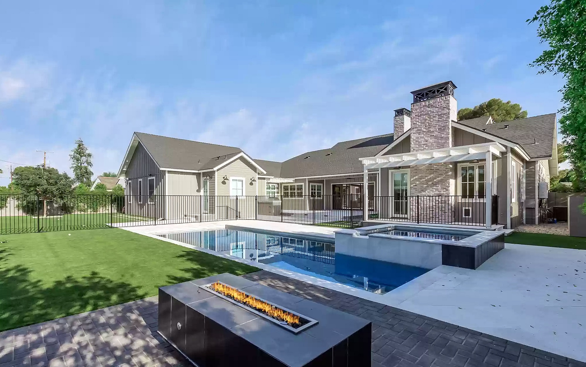 Incorporating high design and luxury finishes this 6,000 square foot custom home features a 4 car garage, 5 bedrooms, 4 ½ baths, a pool cabana and bonus rooms.